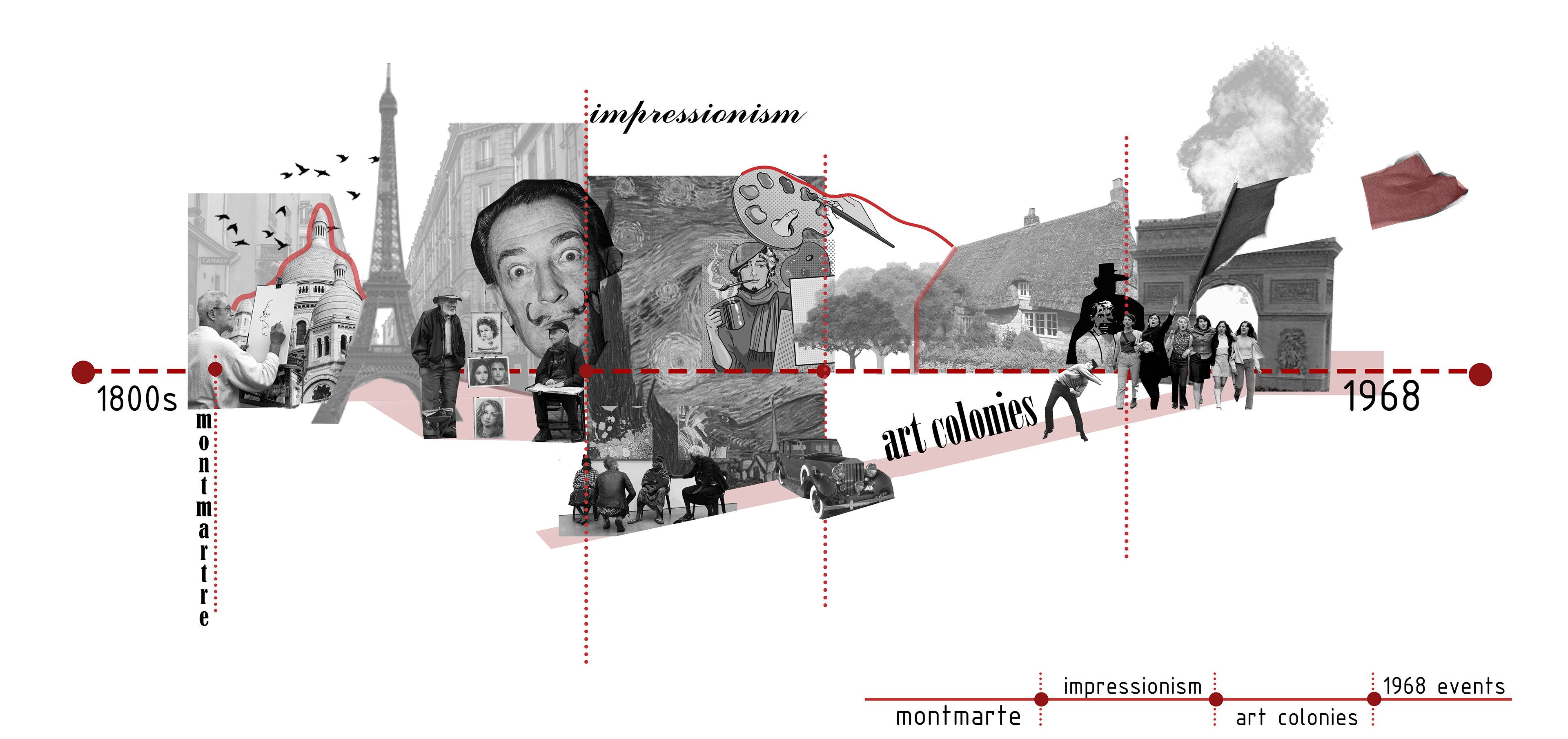 Design is based on several facts of artists and art in Paris from 19th century to today