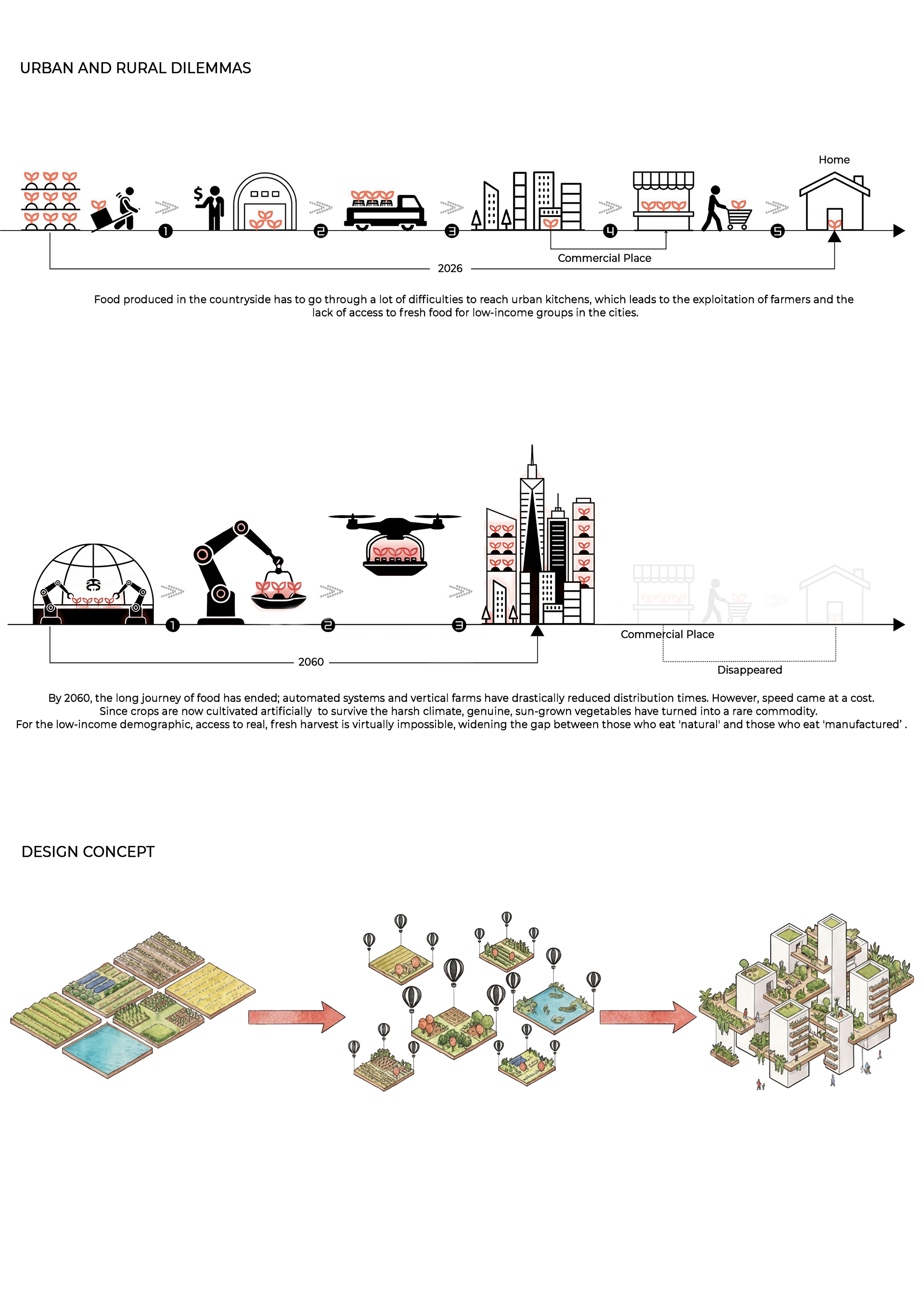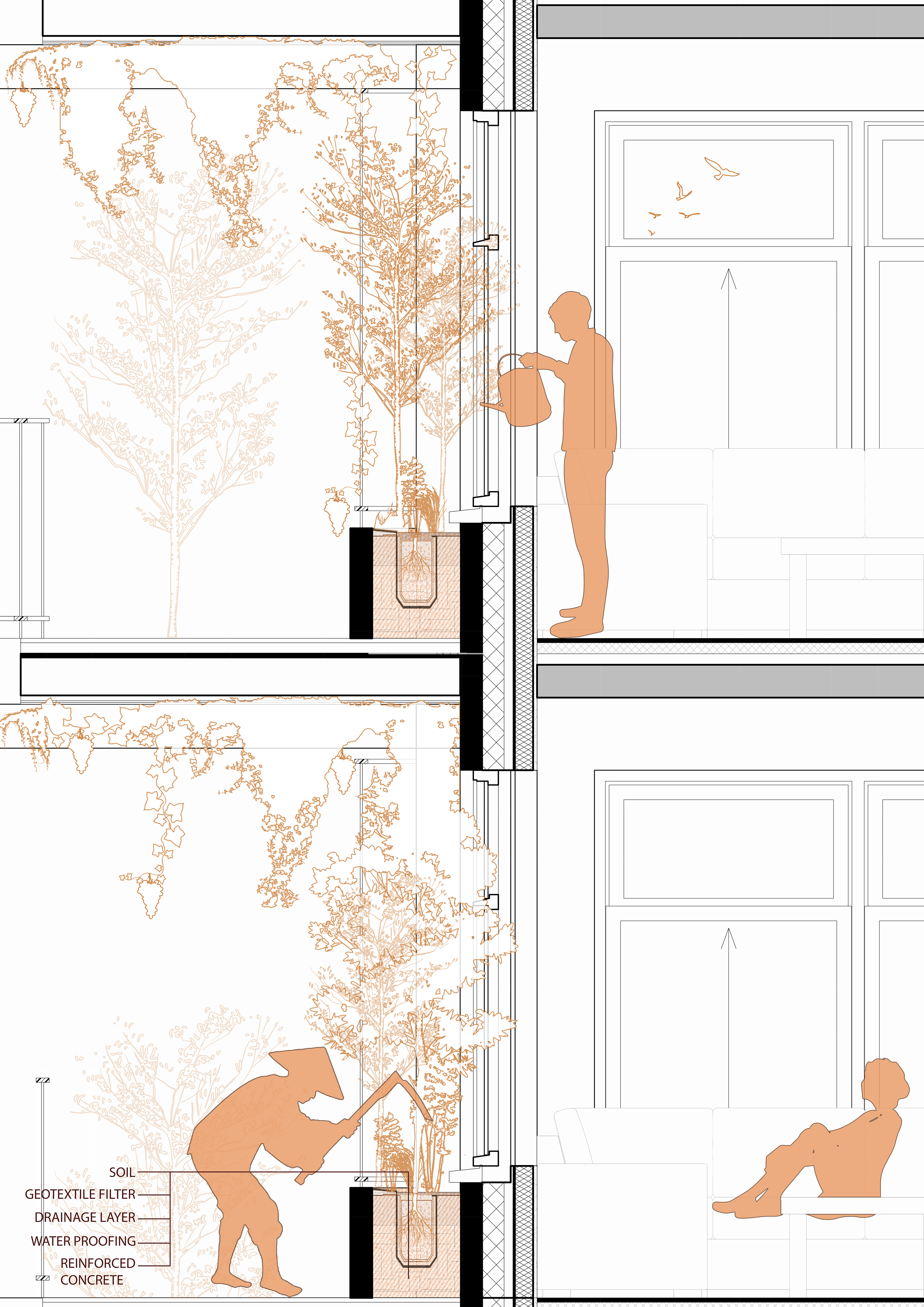 By transforming residual voids into shared agricultural platforms, the proposal creates new zones of encounter distributed throughout the section of the city. Coincidental meetings, collective production, and seasonal rituals redefine public life, establishing a renewed relationship between human, food, and soil.